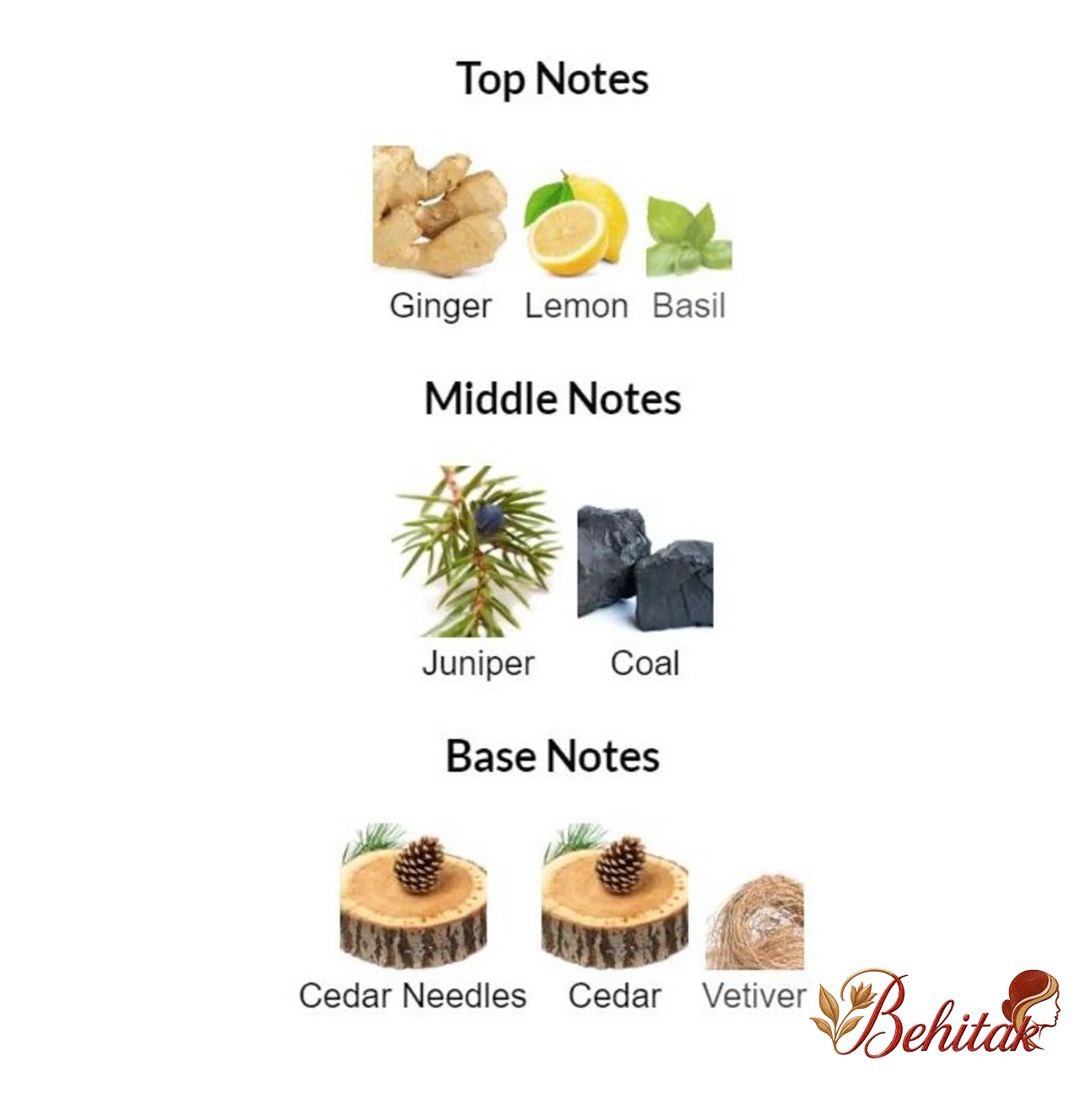 نت میانی: اکورد سنگ سیاه، لاوندر، نعناع کوهی — ترکیبی مرموز، گیاهی و غنی