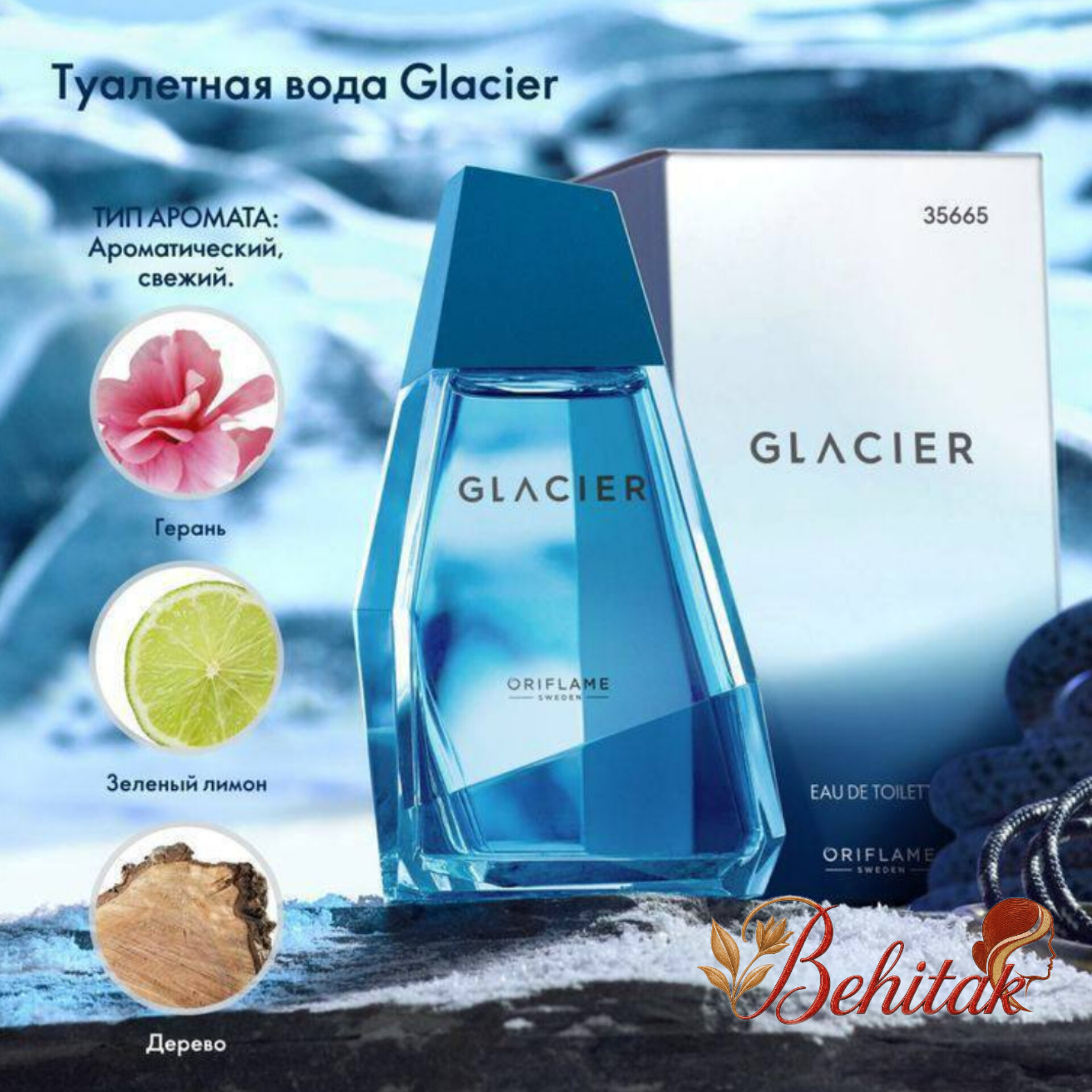 ادو تویلت گلیشر با رایحههای خنک و گازدار مرکبات و کمی نعناع آغاز میشود و در ادامه با رایحههای آناناس و گلهای رز یخی و شمعدانی ادامه مییابد. رایحه فوقالعاده تازه با ترکیبی مردانه، گرم و چوبی به پایان میرسد.