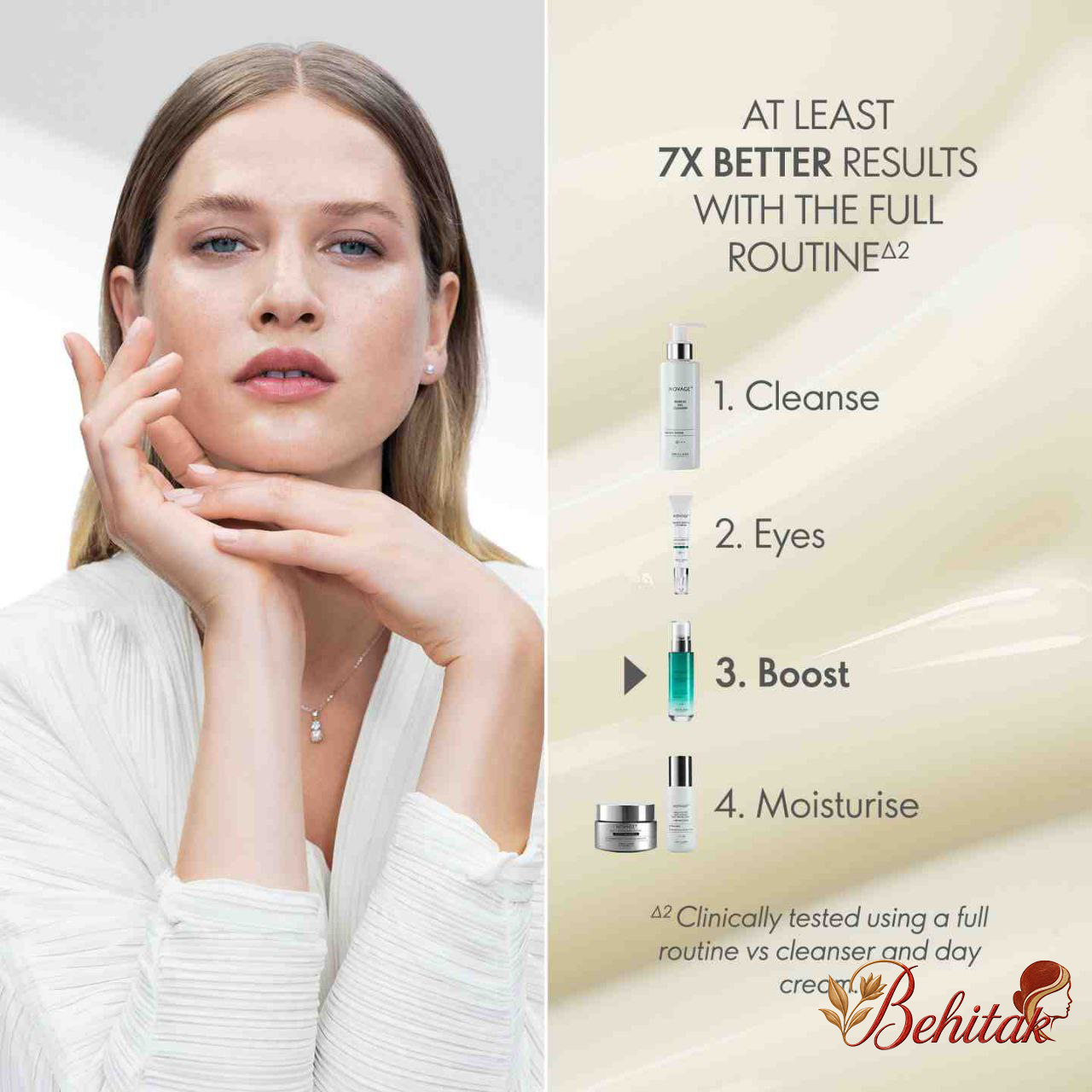 تکنولوژی + Bio CollagenPro یک فناوری ضد چروک با منشأ طبیعی برای کمک به فعال کردن تولید کلاژن در پوست و تحریک تجدید سلولی برای صاف کردن ظاهر چین و چروکهای عمیق. ثابت شده است که به اندازه رتینول بر روی چین و چروکها موثر است، اما روی پوست ملایمتر عمل می کند.