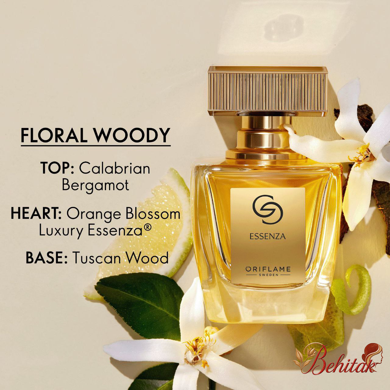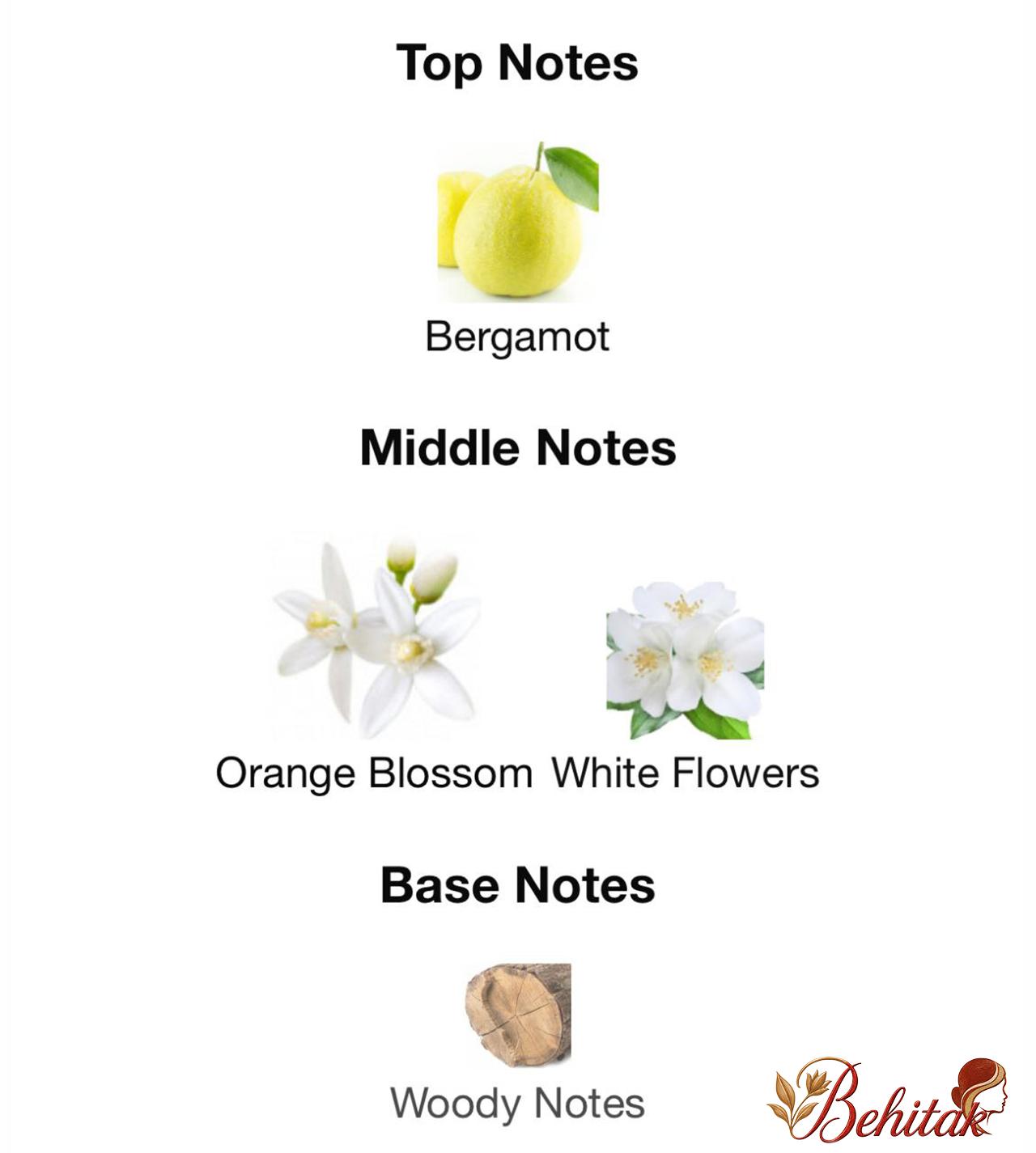 ترکیب سه رایحه درخت برگاموت و کالبریا و درخت توسکانا (ترکیب سه رایحه شکوفه درخت ترنج، شکوفه پرتقال و گل های سفید و نت چوبی) برای زنان می باشد.درب این عطر از ورق طلای 24 عیار میباشد و بطری آن از مرغوبترین کریستال و سنگین میباشد.