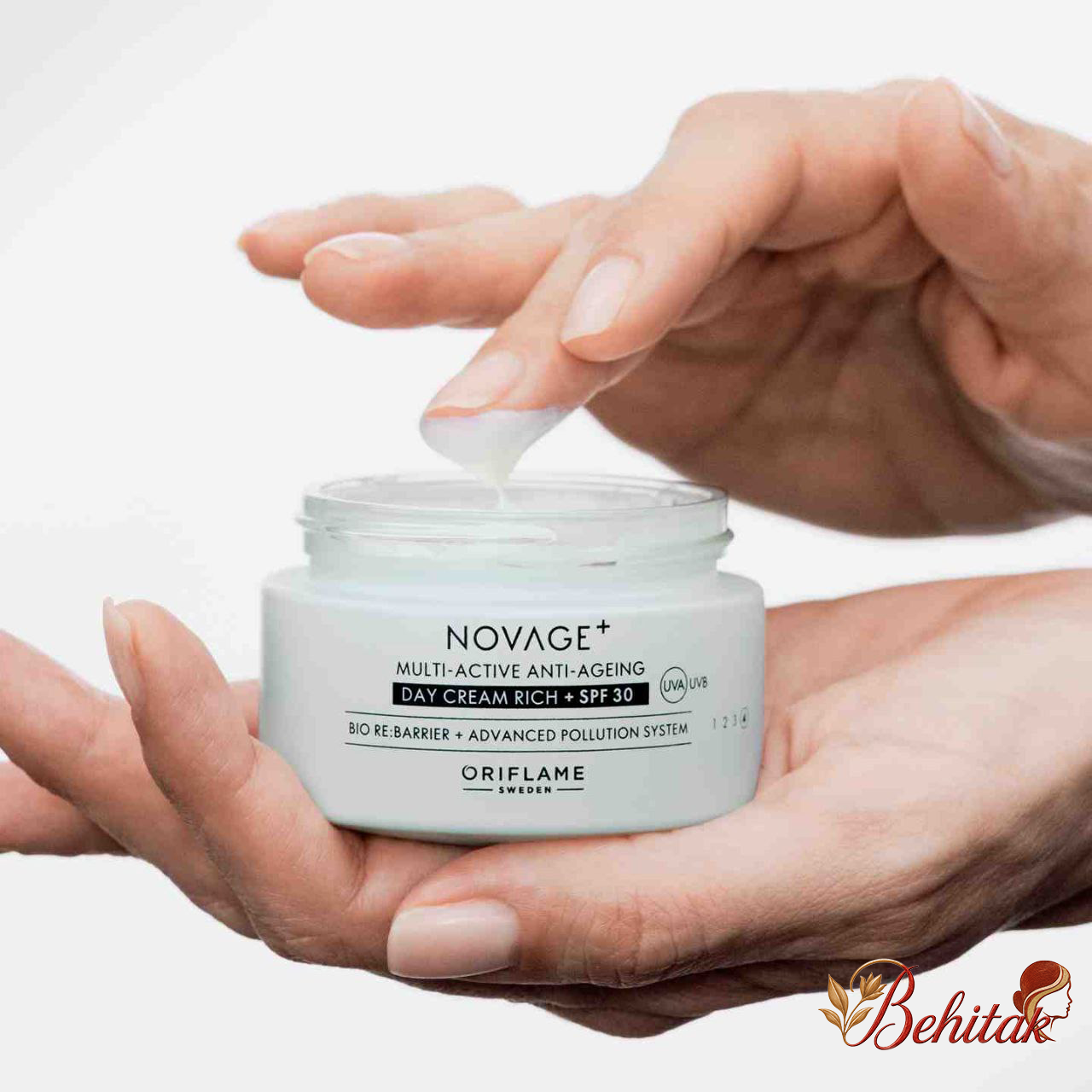 کرم روز ضد پیری با عملکرد چندگانه Novage+ Rich SPF 30 پوست را به شدت آبرسانی و تغذیه می کند، سد محافظ پوستی را تقویت و محافظت می کند تا با علائم متعدد پیری مبارزه کند. پوست را استحکام میبخشد ، خطوط ریز و چین و چروک را کاهش می دهد و درخشندگی را افزایش می دهد.